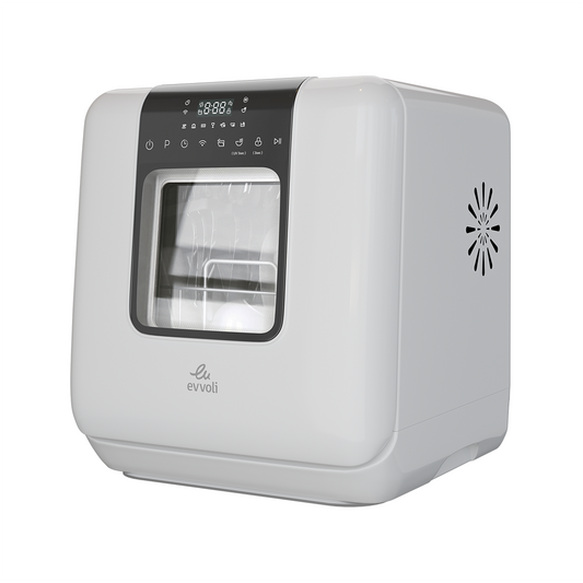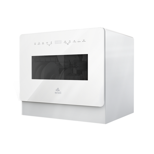 Evvoli Mini Table-top Portable Dishwasher with 3 Place Settings and 7 Wash Programs | 860W