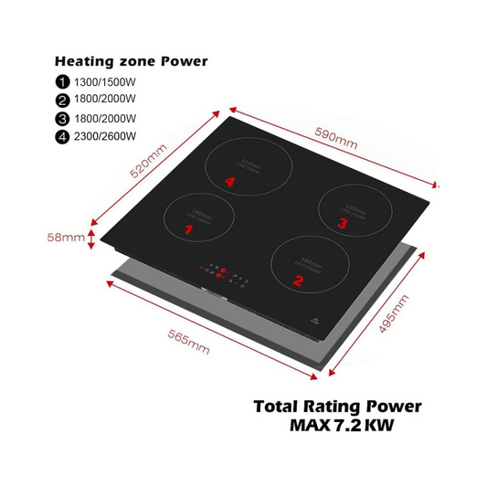 Evvoli Built-In Induction Hob with 4 Burners| 7200W
